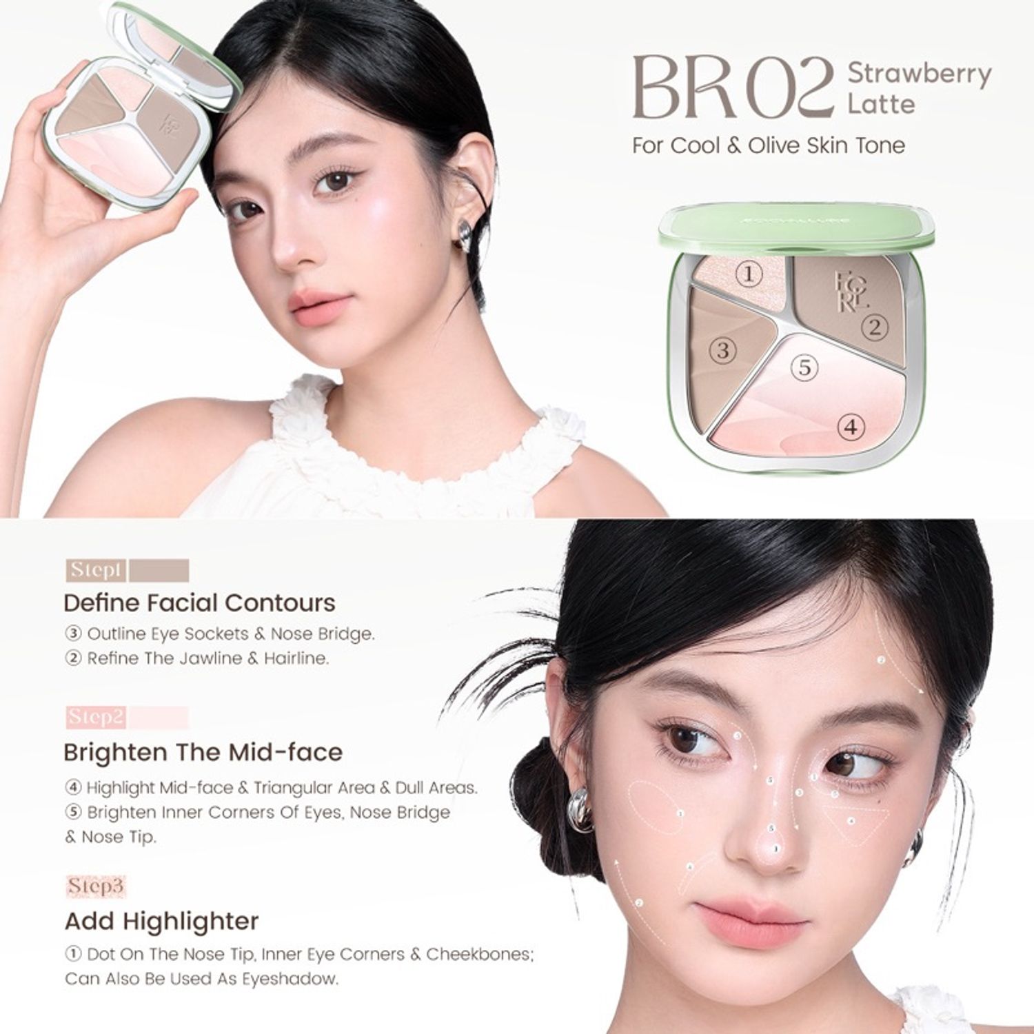 Хэт олон бүтээгдэхүүн давхарлах шаардлагагүй — Highlight + Blush + Contour + Brightening Powder бүгд нэг дор.